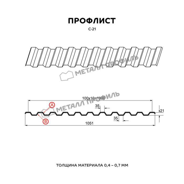 Профлист Металл-Профиль С-21 Полиэстер 0.4 мм RAL 3011 Коричнево-красный